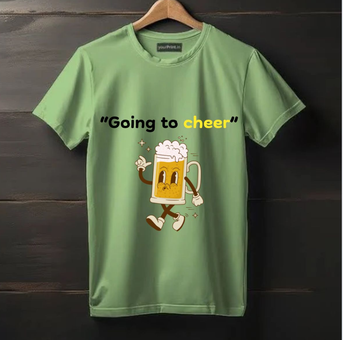 Celebrate good vibes with this “Going to Cheer” Beer Mug Printed Olive Green T-Shirt. Designed with a soft bio-wash cotton fabric, this tee is comfortable, breathable, and perfect for all-day wear. The cartoon beer mug with a cheerful vibe makes it a fun choice for parties, get-togethers, and casual hangouts.