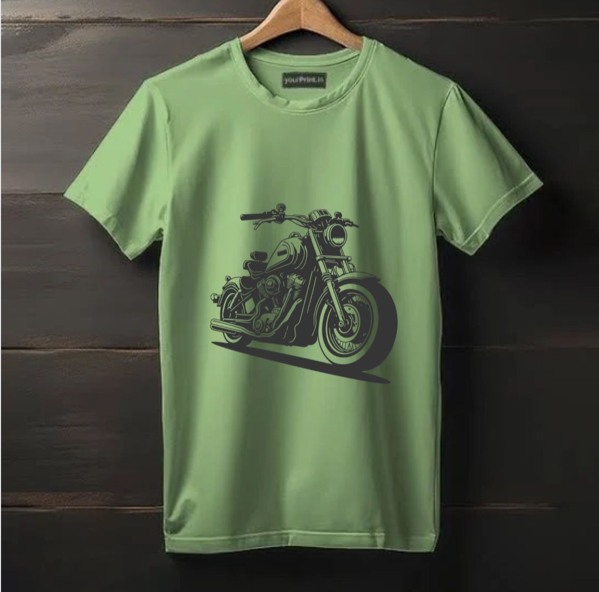 Men’s Cotton T-Shirt with Motorcycle Print (Olive Green)