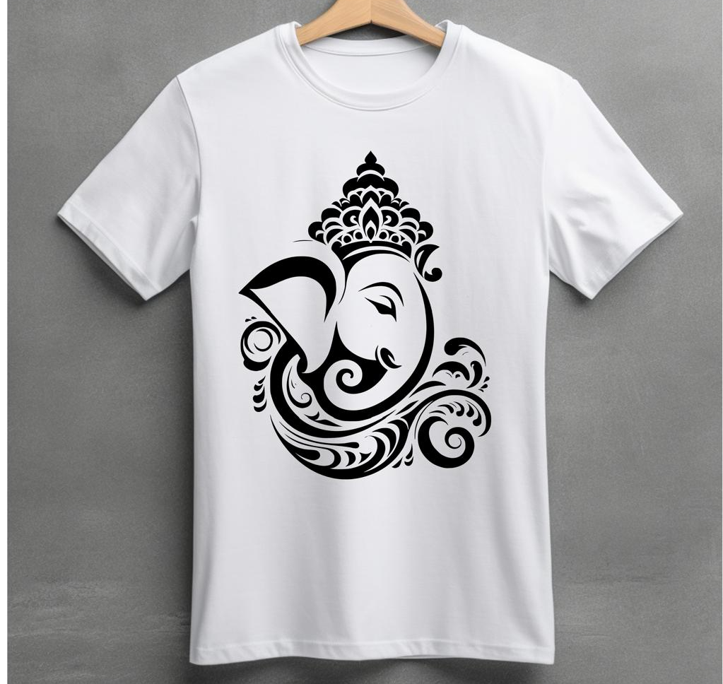 This premium quality cotton T-shirt features a unique Lord Ganesha print in black artwork. Designed for comfort and style, this T-shirt is perfect for casual wear, gifting, and festive occasions. Available in multiple sizes and customizable options. This T-shirt is crafted from high-quality 100% cotton fabric that ensures breathability and comfort all day long. The unique black Ganesha artwork print adds a touch of elegance, making it perfect for both casual outings and festive occasions.